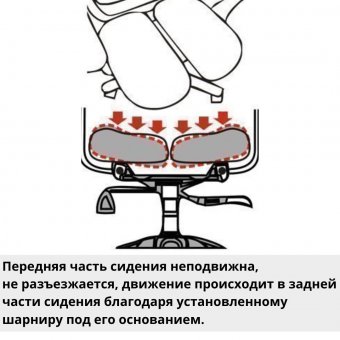 • Раздвоенное сидение, две половинки которого двигаются самостоятельно, подстраиваясь под полжение тела человека и снимая нагрузку на поясничный отдел и органы малого таза. Передняя часть сидения неподвижна, не разъезжается, движение происходит в задней части сидения благодаря установленному шарниру под его основанием.