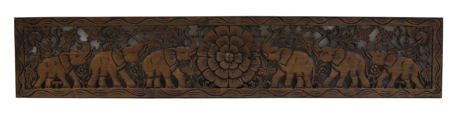 Панно деревянное резное "Шесть слонов с цветком" h=35 см