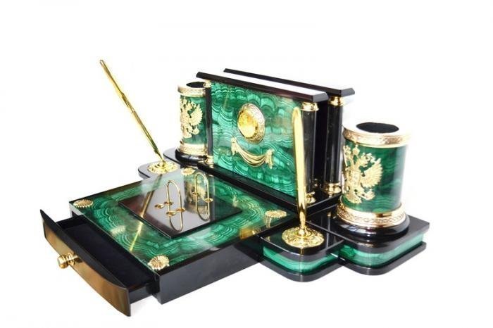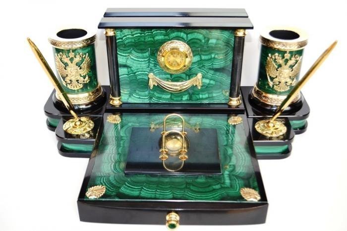 Настольный набо из малахита МБ-045