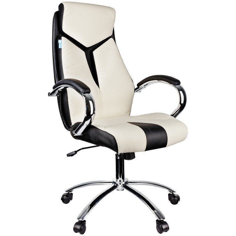 Кресло руководителя Helmi HL-E01 "Inari", экокожа черная/бежевая, хром