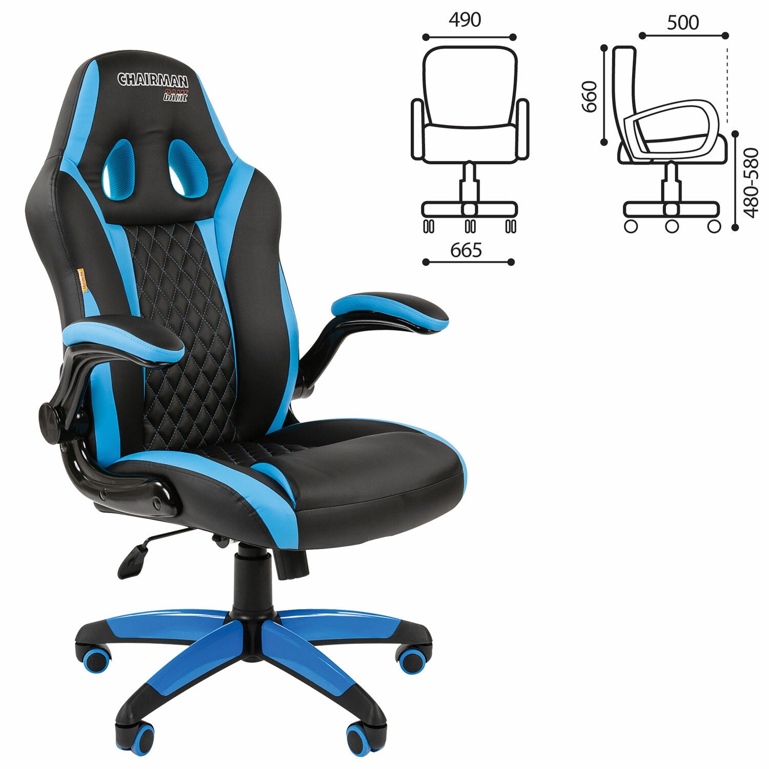 Кресло компьютерное СН GAME 15, экокожа, черное/голубое, 7022779