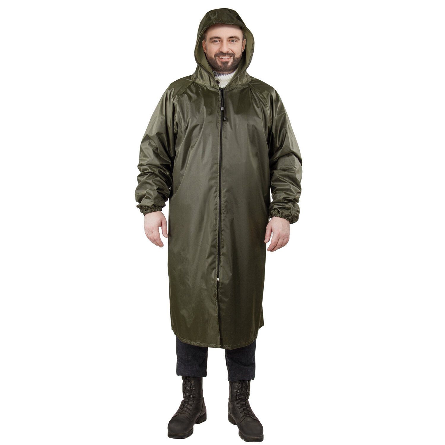 Плащ-дождевик цвета хаки на молнии многоразовый с ПВХ-покрытием, размер 60-62 (XXXL), рост 170-176, ГРАНДМАСТЕ