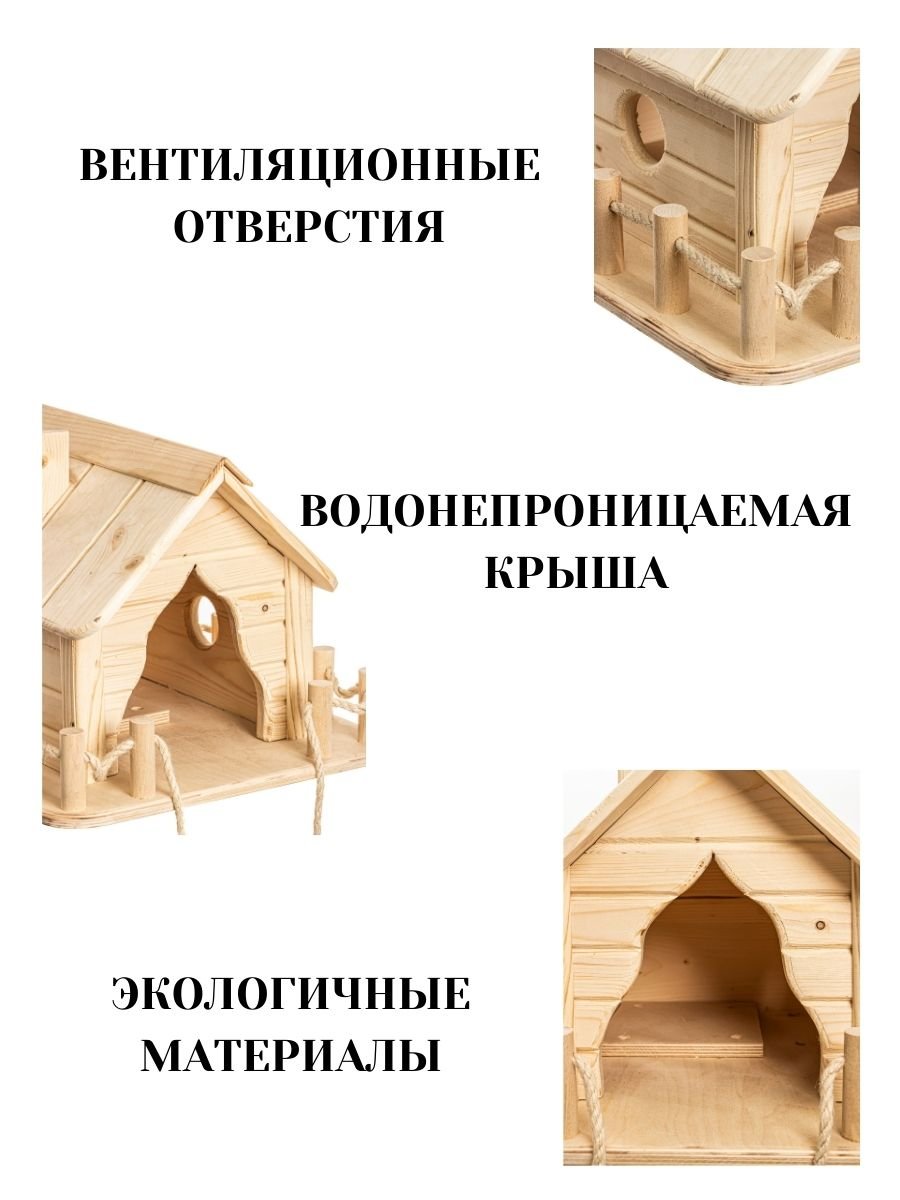 Домик изготовлен из натурального дерева. Его можно установить на дерево, на вашем участке или любым другим удобным способом. Весит он 2 кг.
