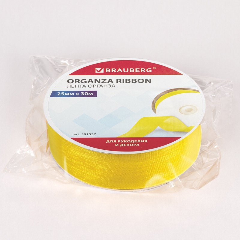 Лента органза ширина 25 мм, длина 30 м, желтая, BRAUBERG, 591537