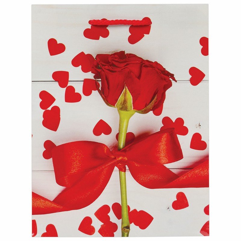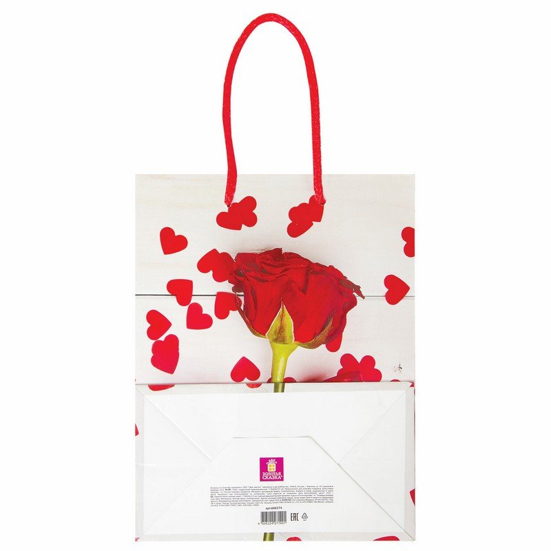 Пакет подарочный 17,8x9,8x22,9 см, ЗОЛОТАЯ СКАЗКА "Роза с лентой", ламинированный, 606574