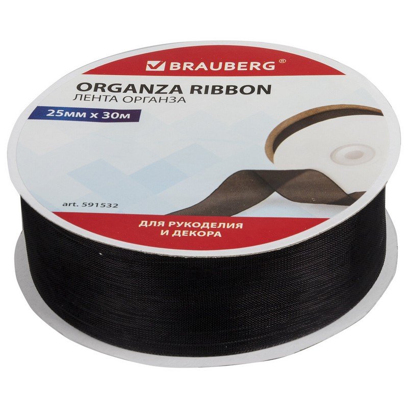 Лента органза ширина 25 мм, длина 30 м, черная, BRAUBERG, 591532