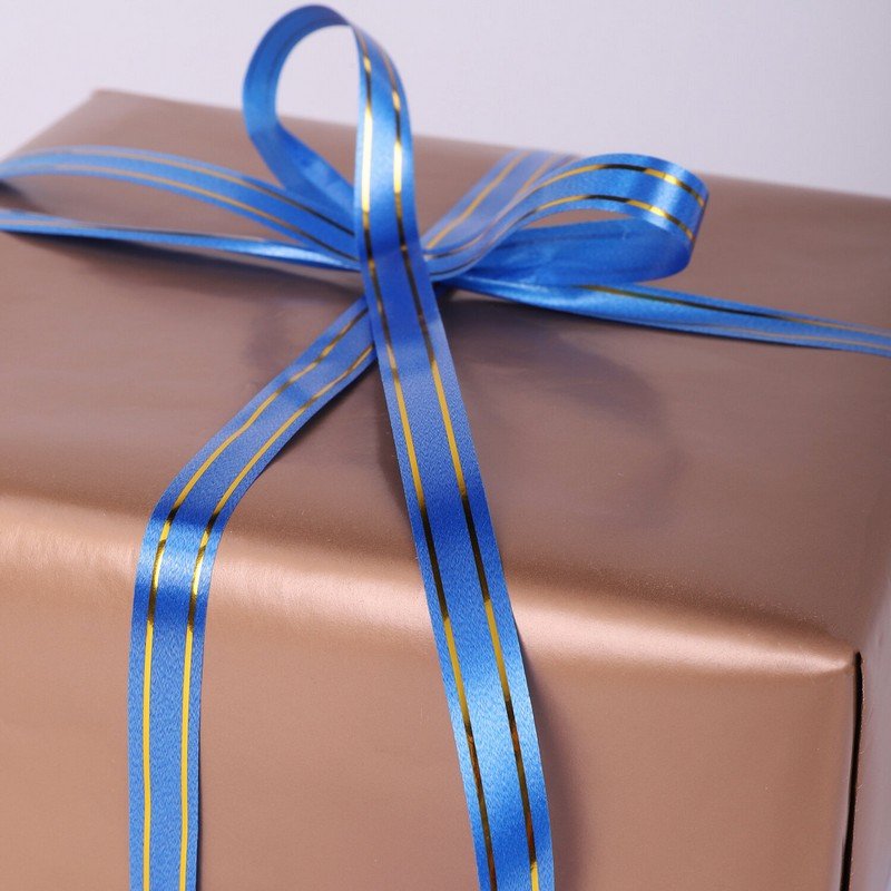 Лента упаковочная декоративная для подарков, золотые полосы, 12 мм х 45 м, синяя, ЗОЛОТАЯ СКАЗКА, 591822