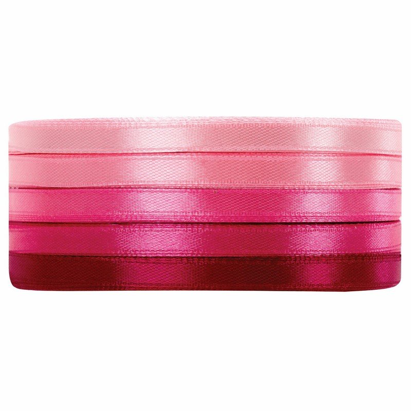 Лента атласная ширина 6 мм, РОЗОВЫЙ СПЕКТР набор 5 цветов по 23 м, BRAUBERG, 591491