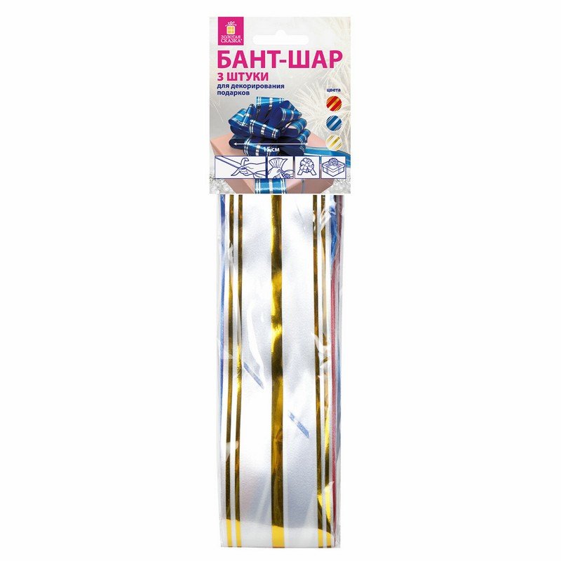 Бант-шар d = 15 см для подарка, НАБОР 3 шт., цвета красный/золотой, синий/серебристый, белый/золотистый, ЗОЛОТ
