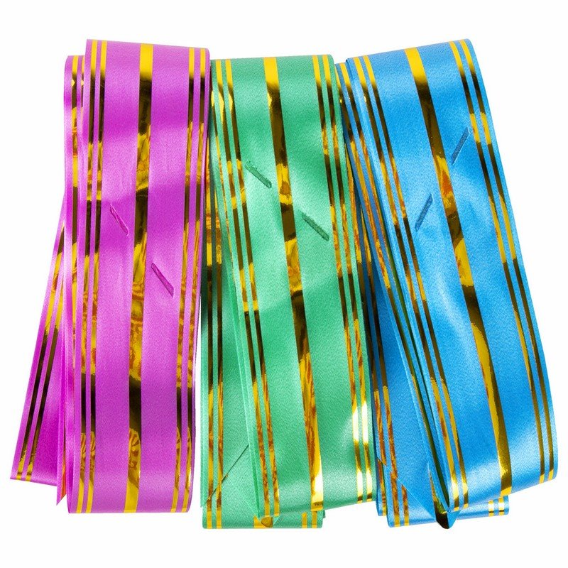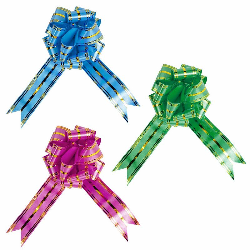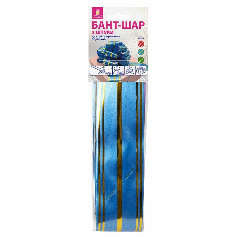 Бант-шар d = 15 см для подарка НАБОР 3 шт., золотые полосы, фуксия, бирюза, зеленый, ЗОЛОТАЯ СКАЗКА, 591836