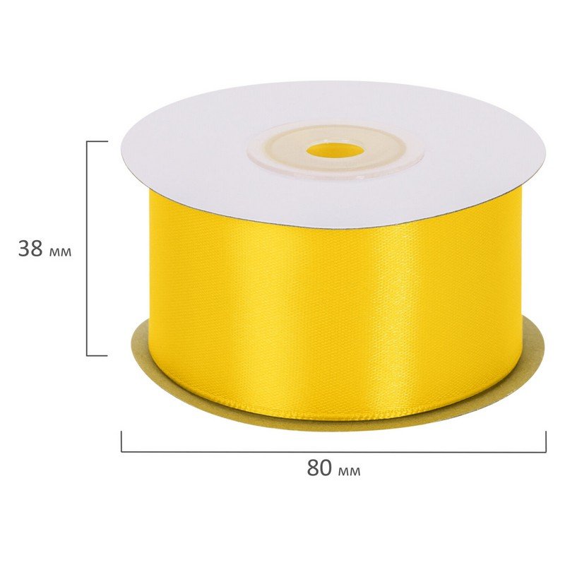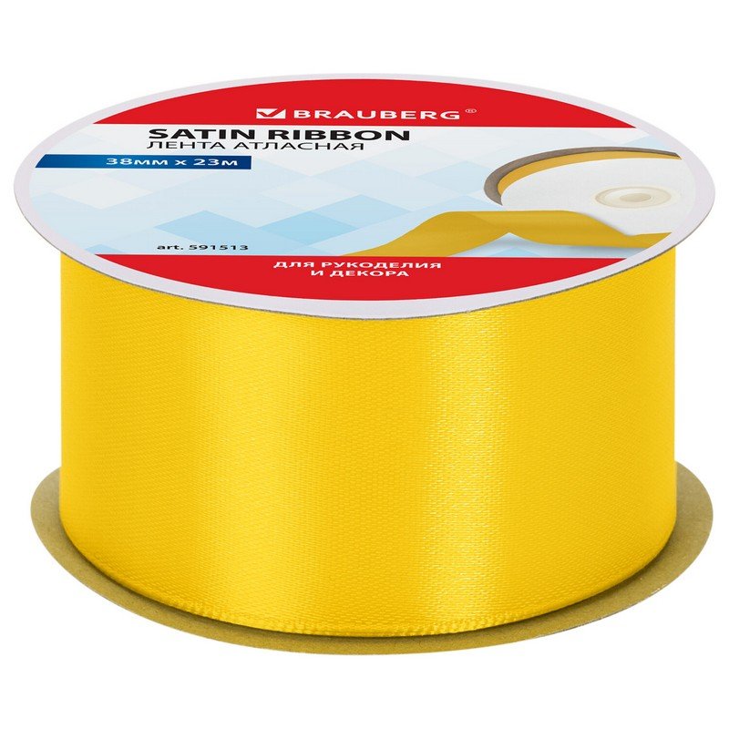 Лента атласная ширина 38 мм, длина 23 м, желтая, BRAUBERG, 591513