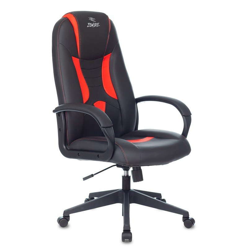 Кресло компьютерное ZOMBIE 8, экокожа, черное/красное, 1583068