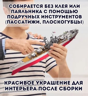 Конструктор 3D пазл металлический "Линкор Yamato" Luxury Gift Первый из линкоров своей серии, был заложен 4 ноября 1937 года на верфи ВМС в Куре, префектура Хиросима. Он был спущен на воду 8 августа 1939 года, и официально вступил в строй 16 декабря 1941 года. Однако, боеготовым корабль объявили лишь 27 мая 1942 года. «Ямато» — линкор японского императорского флота времён Второй мировой войны типа «Ямато». Один из самых больших военных кораблей в истории человечества из когда-либо потопленных в ходе боевых действий. «Ямато» — древнее название самой Японии, однако в виду известной традиции Императорского Флота называть линейные корабли именами исторических провинций, в данном случае имелась в виду провинция Ямато, примерно соответствующая современной префектуре Нара.