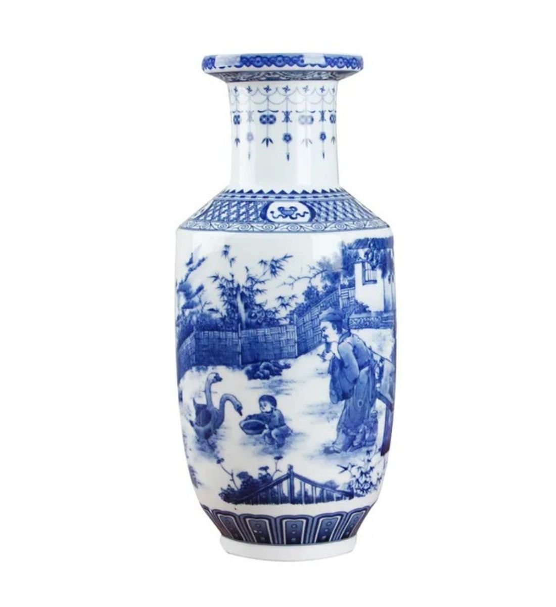 Стильная настольная ваза под цветы Luxury Gift выполненная в традиционном китайском стиле является идеальным аксессуаром для вашего интерьера. Керамическая ваза с яркой синей росписью имеет удобные размеры 25.5 х 8.4 (ВШ) и станет отличным дополнением к вашему домашнему декору.