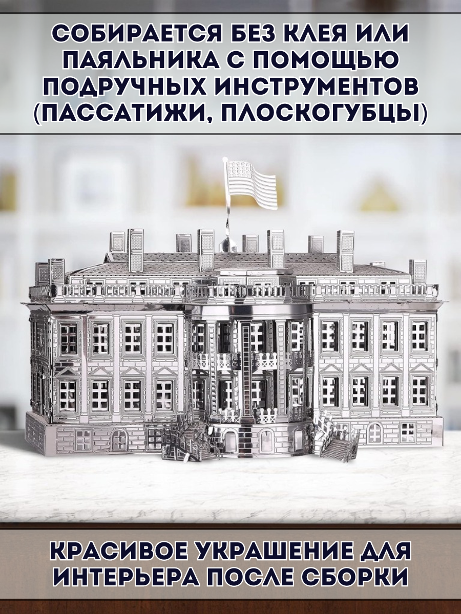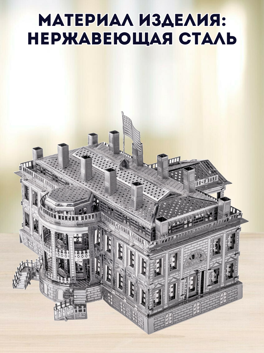 Конструктор 3D пазл металлический "Белый дом" Luxury Gift. Был построен в 1792 году и завершен в 1800 году. Место для строительства было выбрано отцом-основателем Соединенных Штатов, первым президентом Джорджем Вашингтоном. Начиная со второго президента Джона Адамса, все последующие президенты США использовали Белый дом в качестве своей официальной резиденции. С годами Белый дом стал синонимом правительства США. За 200 лет комплекс Белого дома приобрел ярко выраженный британский архитектурный стиль, а позже вобрал в себя американский архитектурный стиль. “Простота и элегантность” - основной архитектурный стиль Белого дома. Пазл способствует развитию мелкой моторики, мышления, тренирует память и воображение. 3д пазлы требуют внимания и усидчивости при соединении частей.