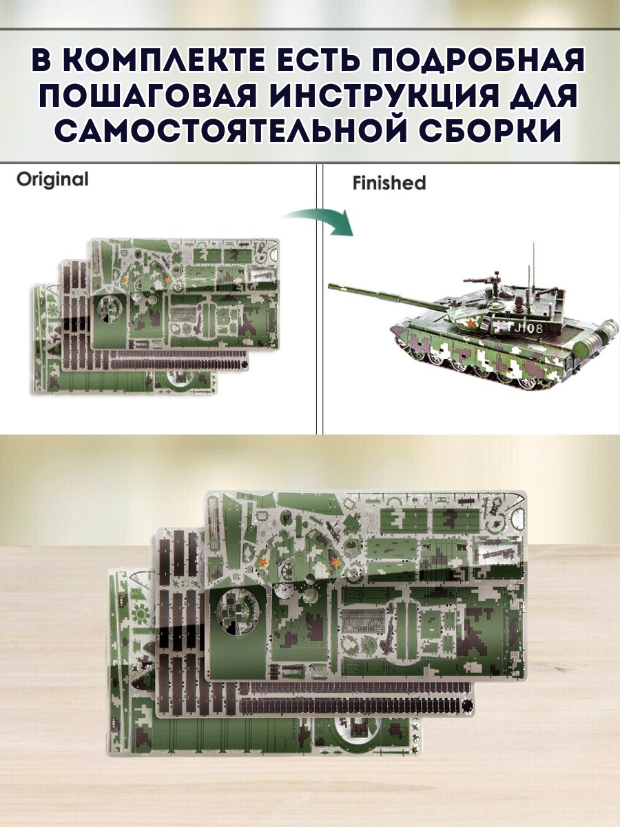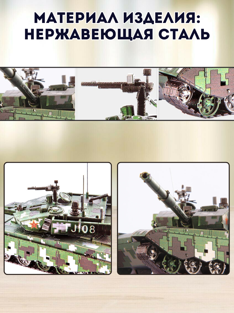 Конструктор 3D пазл металлический танк "99A Main Battle Tank" Luxury Gift. Китайский основной боевой танк третьего поколения. В основном он используется для подавления и ликвидации противотанковых средств, разрушения боевых объектов и прочных укреплений. В июле 2017 года двадцать два танка 99А, выстроенные в форме “стрелы”, появились на параде в честь 90-летия Народно-освободительной армии Китая, символизируя марш “Короля сухопутных сражений”. Пазл способствует развитию мелкой моторики, мышления, тренирует память и воображение. 3д пазлы требуют внимания и усидчивости при соединении частей.