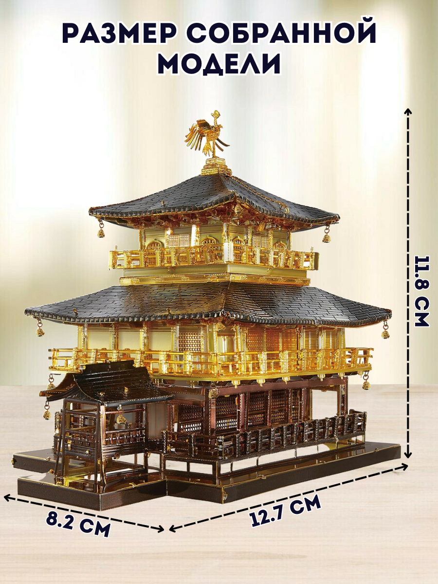 Конструктор 3D пазл металлический "Golden Pavilion" Luxury Gift. Золотой павильон (Кинкаку-дзи) - один из храмов в комплексе Рокуон-дзи в районе Кита города Киото, Япония. Название получил благодаря своему внешнему виду — два верхних этажа павильона покрыты золотом. Павильон был построен в 1397 году как вилла для отдыха сёгуна Асикага Ёсимицу. В 1994 году занесён в список Мирового наследия ЮНЕСКО в Японии. Пазл способствует развитию мелкой моторики, мышления, тренирует память и воображение. 3д пазлы требуют внимания и усидчивости при соединении частей.