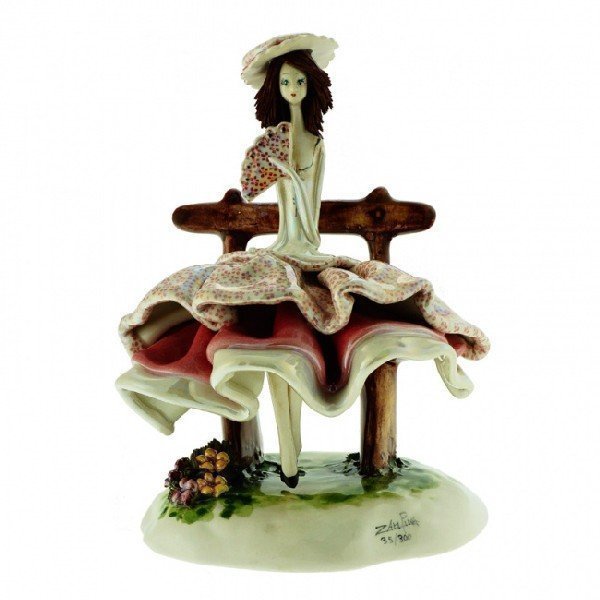 Статуэтка "Дама с веером на скамейке", h=16 см