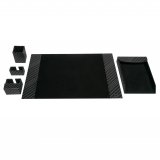 Настольный набор из натуральной кожи, черная тречча, 7 предметов